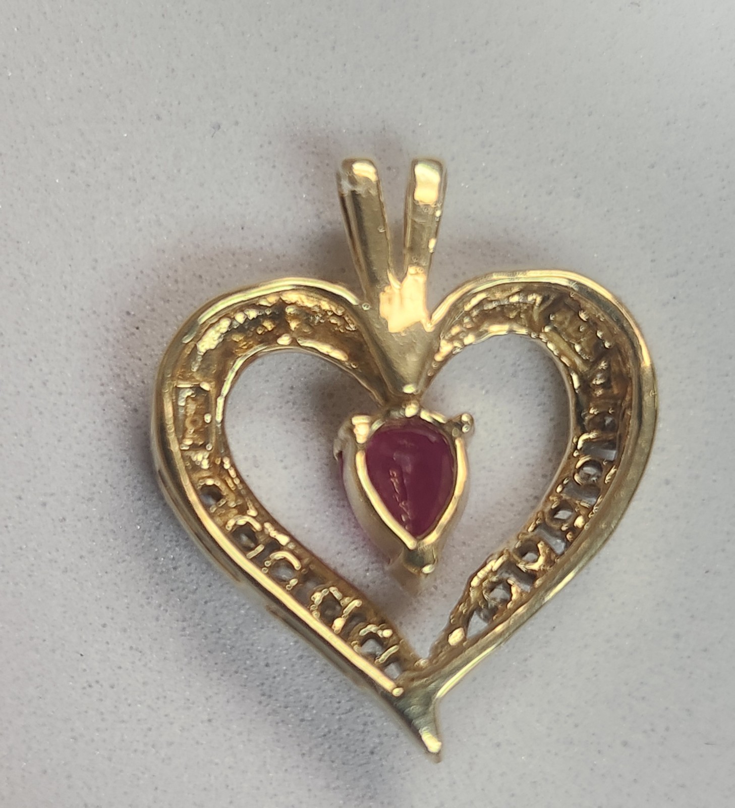 10k yellow gold Diamond heart with pearl shape ruby . ( Pre-owned)